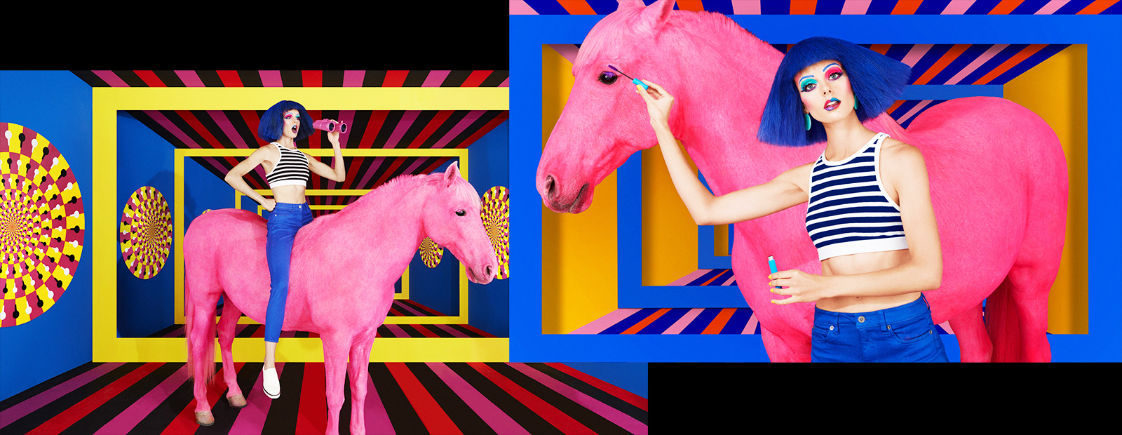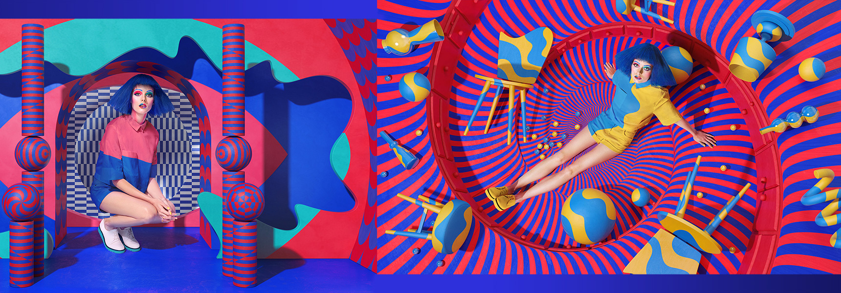 Безумный мир дизайна моды от Aïzone - буйство красок, удивительное сочетание декорированных плоскостей, объемных элементов и поп-арта. Оптические эффекты выгодно подчеркивают ультасовременный дизайн модной одежды, при этом, сама модель становиться органичной частью окружающего фантастического мира. Динамические картины дополняются сочным мейк-апом моделей, созданным известным нью-йоркским визажистом и бодипейнтером русского происхождения Анастасией Дурасовой.