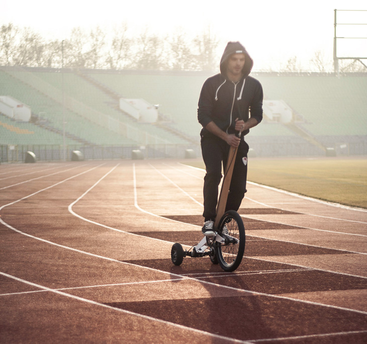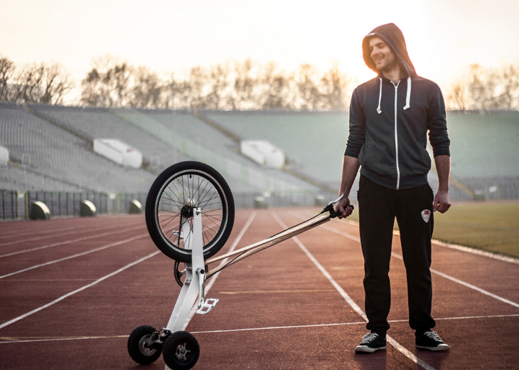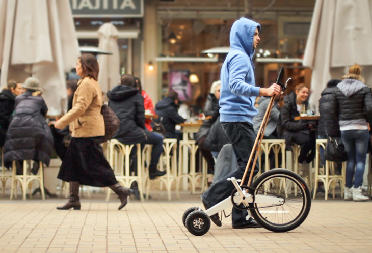 При этом транспортное средство должно быть компактным, легким и не занимать много места. Основатели компании Kolelinia Мартин Ангелов (Martin Angelov) и Михаил Кленов (Mihail Klenov)создали велосипед, отвечающий всем вышеперечисленным требованиям. Конструкция и дизайн halfbike учитывает анатомическое строение человека, сочетает езду на велосипеде и бег, обеспечивает удивительно быстрый и интересный способ передвигаться по городу. Halfbike подходит для поездок на короткие расстояния, а также он достаточно компактный, чтобы взять его с собой в общественный транспорт.