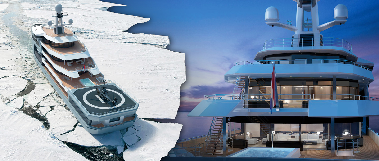 Эта уникальная яхта-ледокол, спуск которой на воду запланирован на 2019 год, подходит для всех широт и путешествий без границ. Позволяет прокладывать новые маршруты не только в тропиках, но и открывать неизведанные удивительные уголки планеты, с комфортом путешествовать в водах, доселе недоступных для яхт, полярных широт.